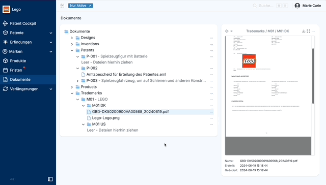 The calm and visually appealing user interface is easy on the eyes and nerves. Thanks to the global search and filter function, you can find exactly what you're looking for with just a few clicks. Recording claims and other tedious IP management tasks become child's play.